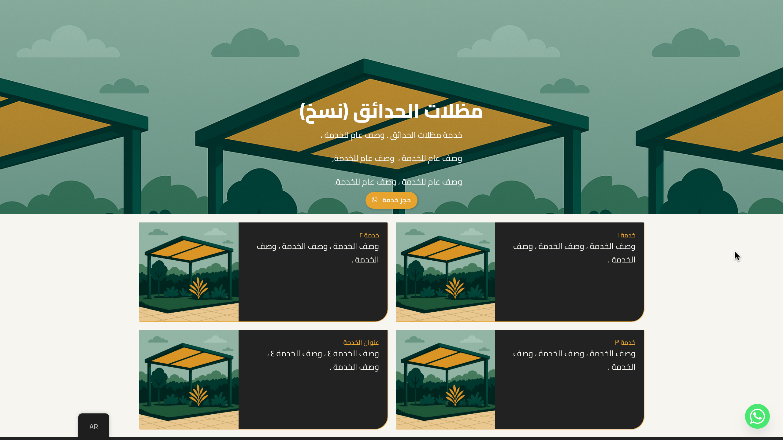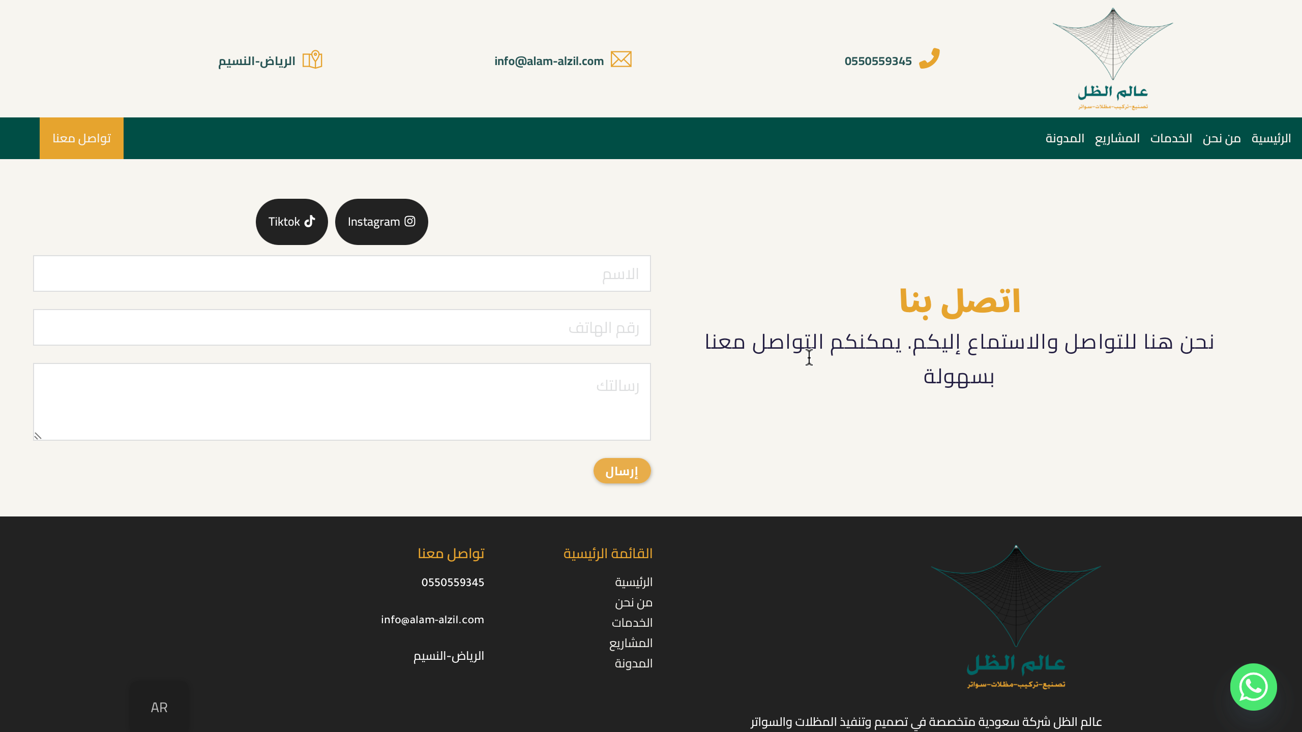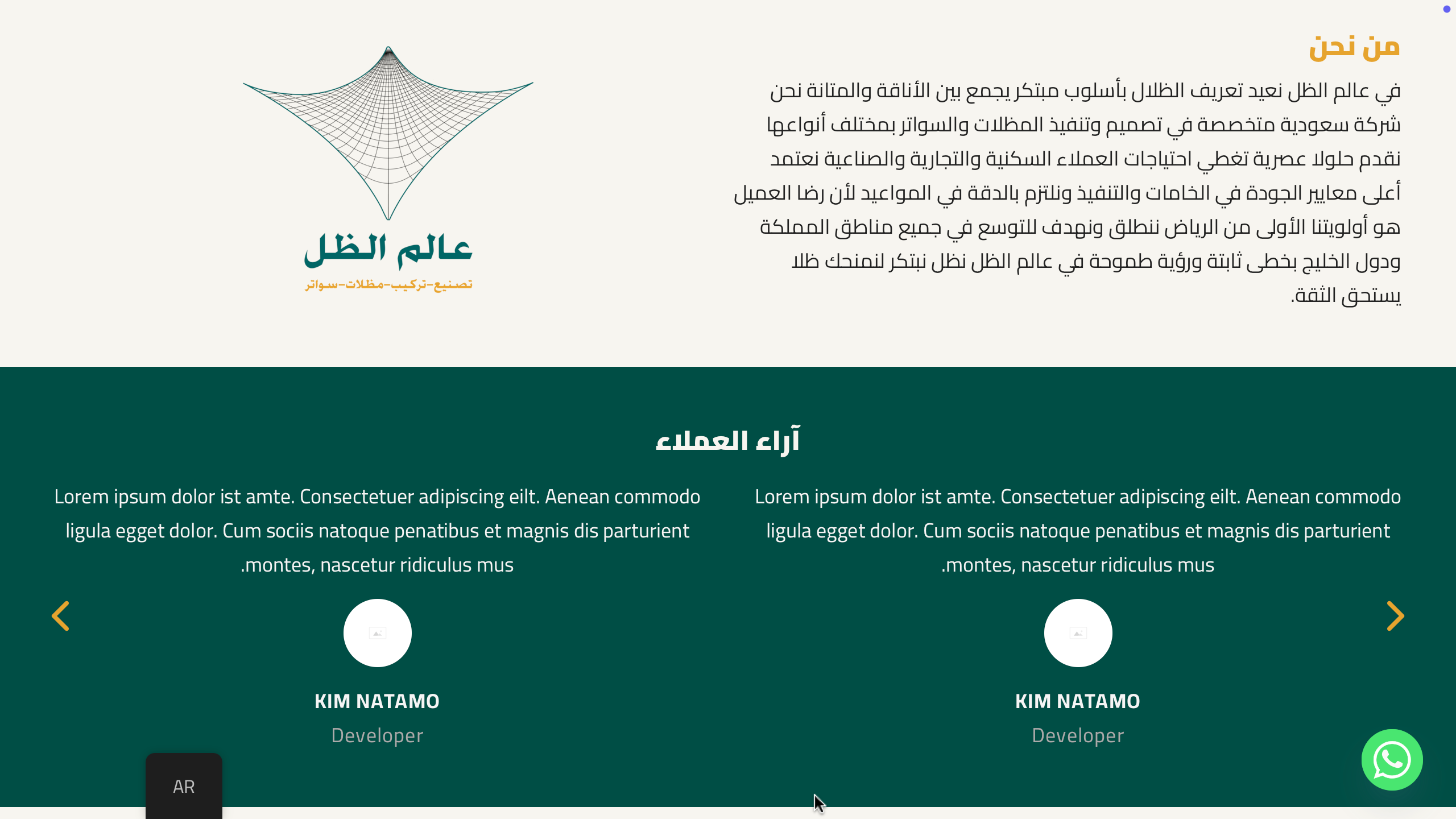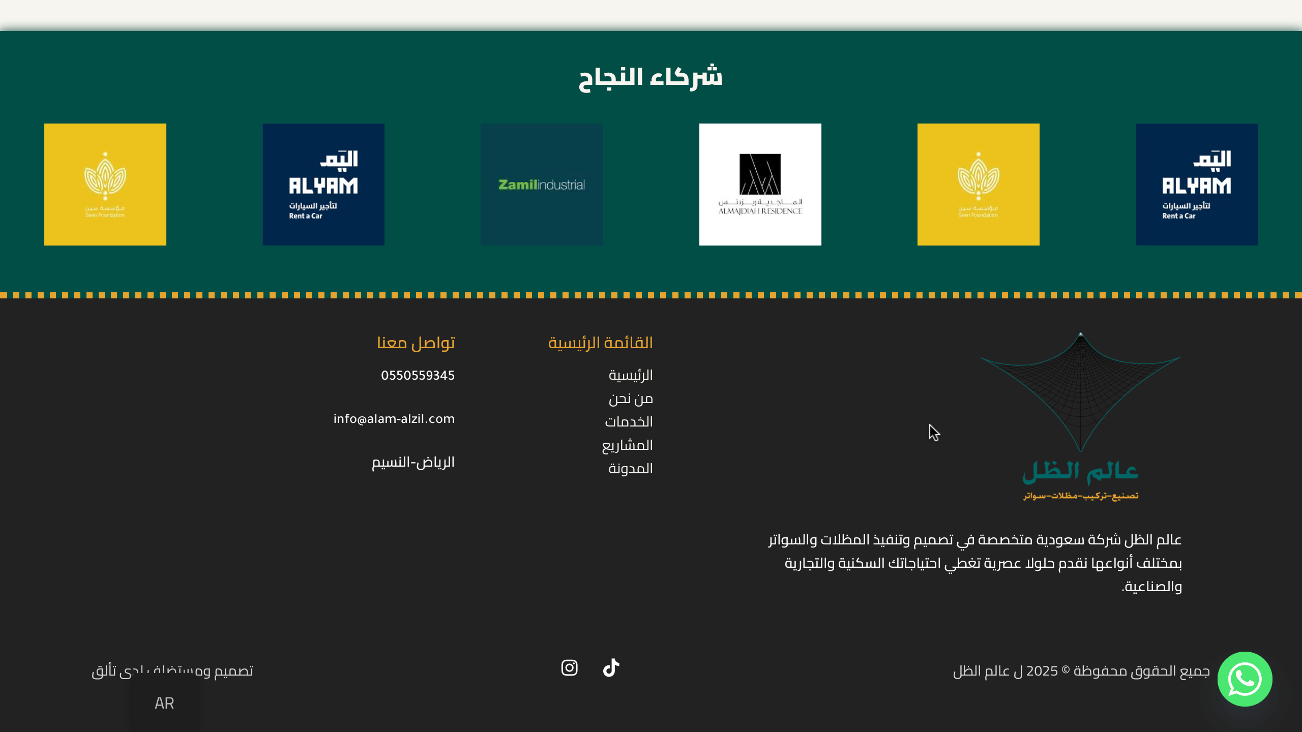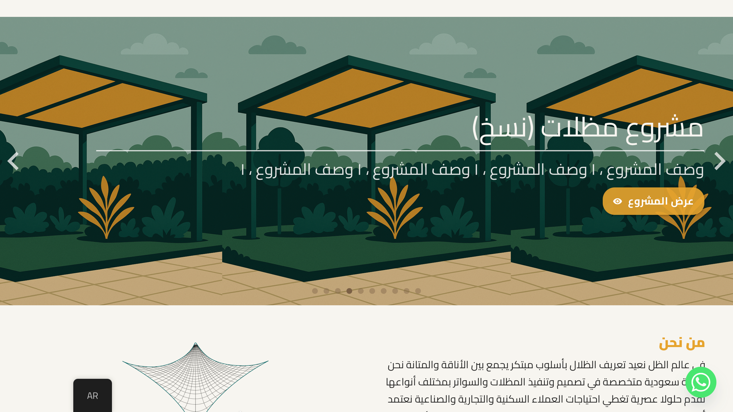 عالم الظل — تصميم موقع شركة مظلات وسواتر بالووردبريس و Bricks